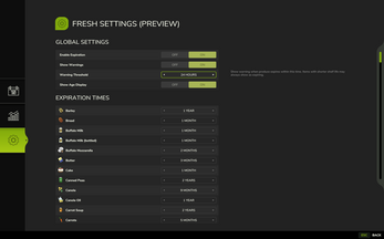 - Configure shelf life for any product (basegame, DLCs, maps/mods)