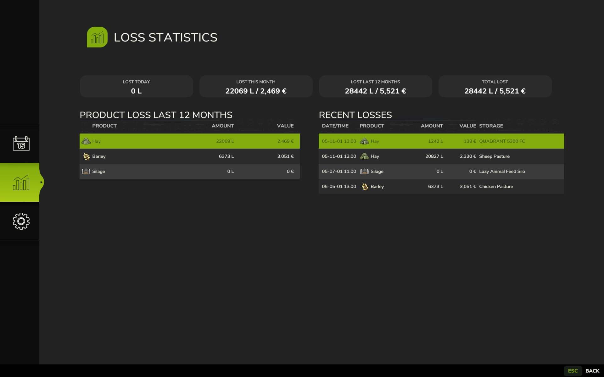 Your harvested crops, processed products, and baled forage now have realistic shelf lives. Fresh vegetables spoil quickly, while canned products last much longer. Bales of grass spoil within days, while silage stays fresh for months. Customize shelf lives to match your playstyle!